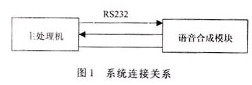 语音合成器是一独立的功能块。 当主处理机用RS232口告知语音合成器有语音输出要求时, 语音合成器的CPU从相应的串口数据寄存器读取信息,并进行判断,按要求产生输出语句。